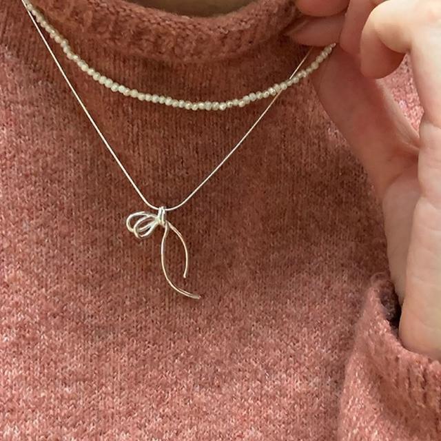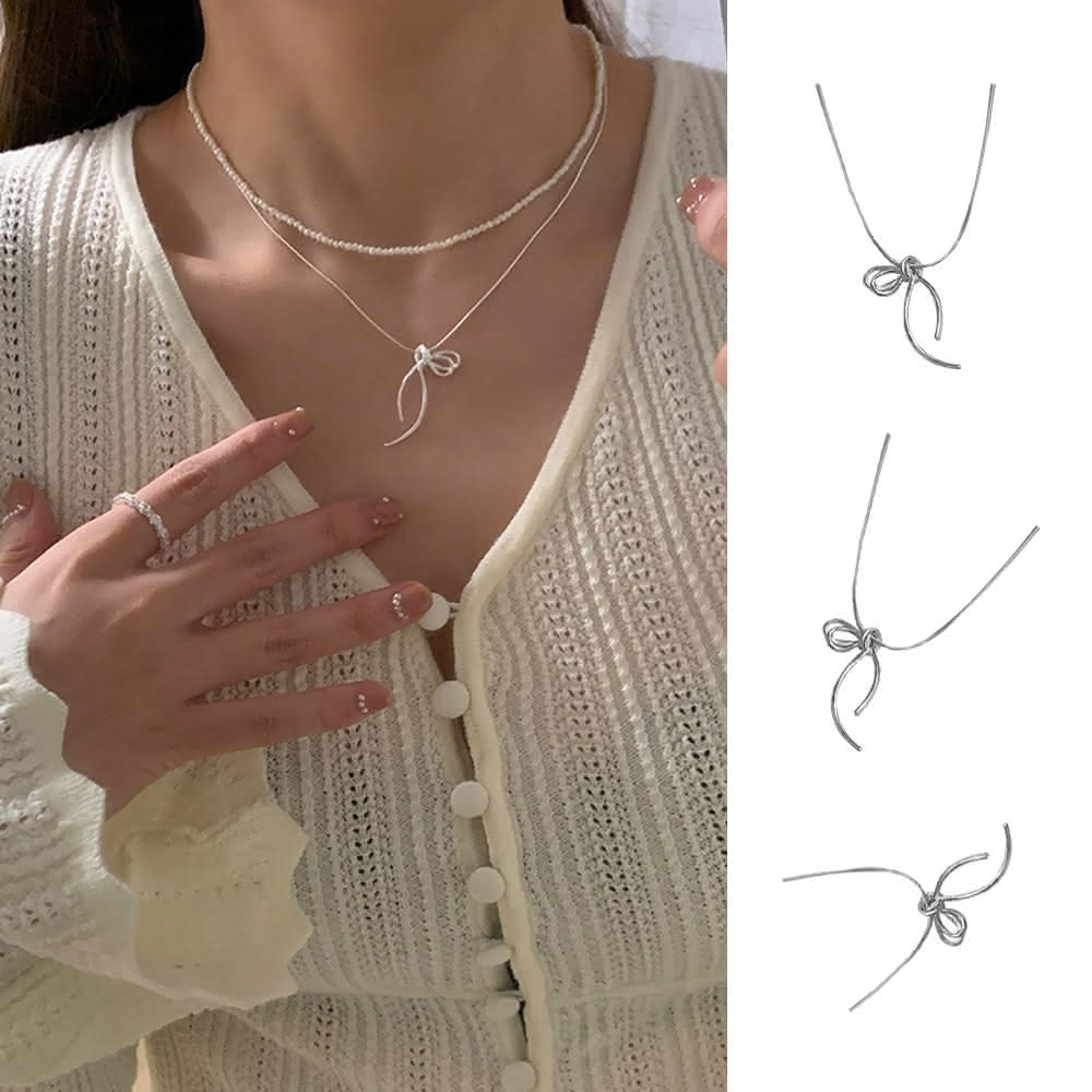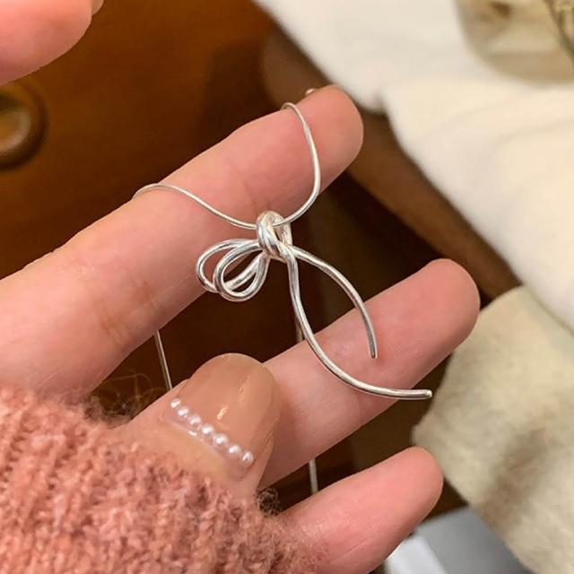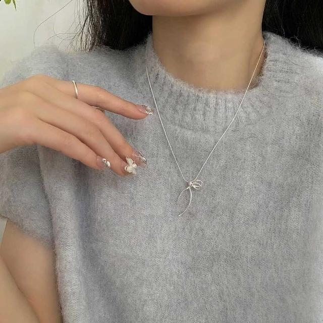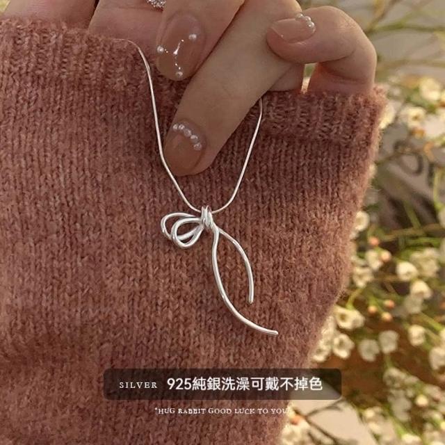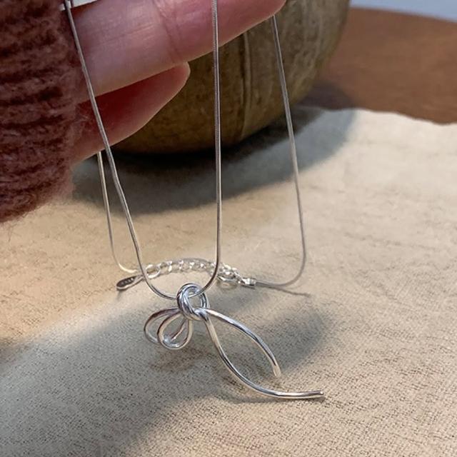 LEESA蝴蝶結項鍊 純銀項鍊 蛇骨鍊 打結項鍊 細項鍊 韓國項鍊 日系項鍊 簡約項鍊