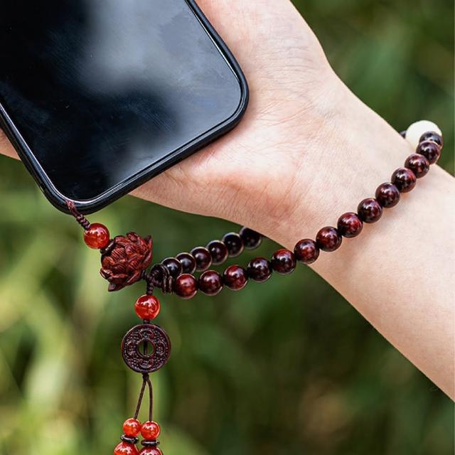 LEESA手機掛繩 小葉紫檀手機鍊 佛珠手機掛繩 保平安 吊飾 手腕掛件 送長輩 禮物 保平安 吊墜飾品