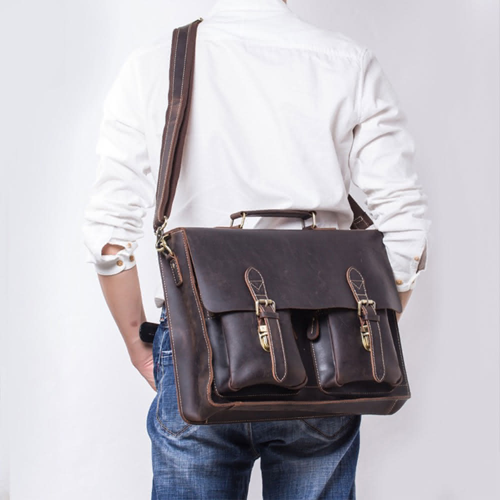 LEESA英倫手提包\復古書包\真皮公文包\男用公事包\劍橋包\高級感\生日禮物\ 14吋電腦包\手提電腦包