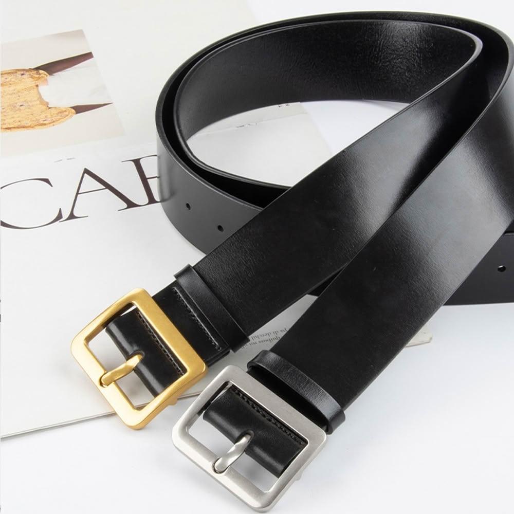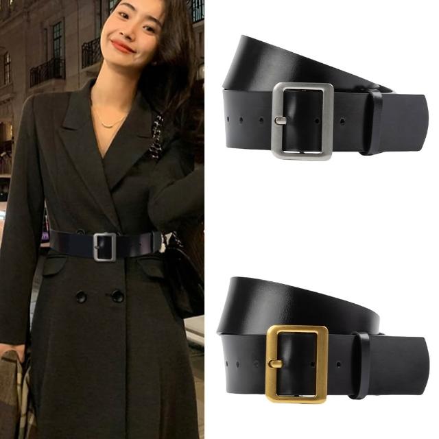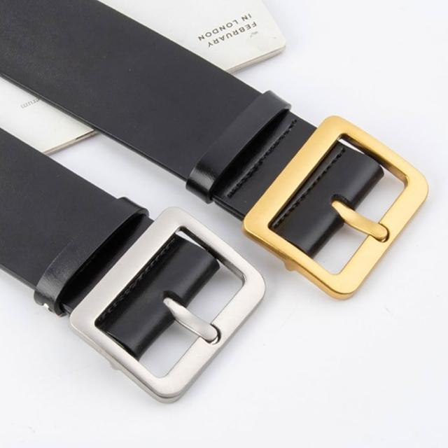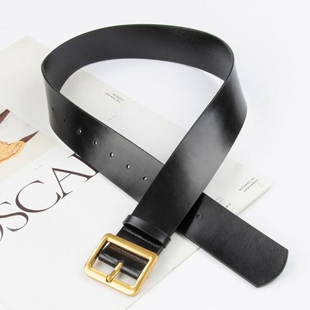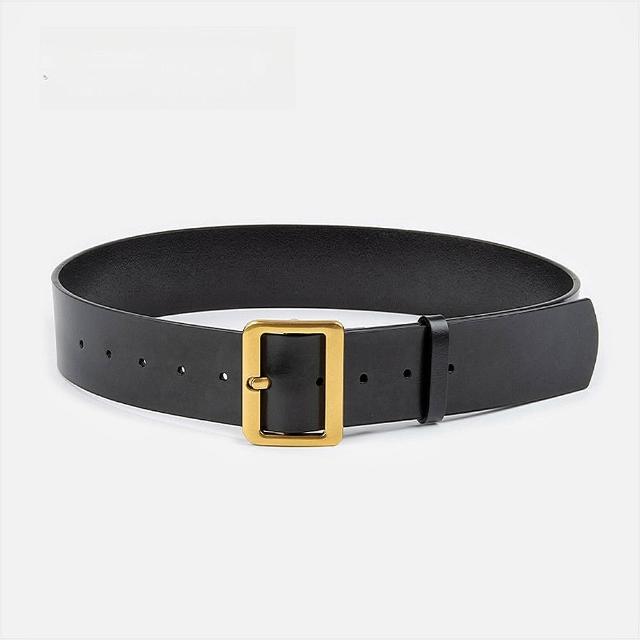LEESA牛皮腰帶\真皮腰帶女腰帶\寬腰帶\皮帶/女生皮帶\方頭腰帶\黑色腰帶\金扣腰帶\腰封\腰帶\真皮皮帶\生日禮物