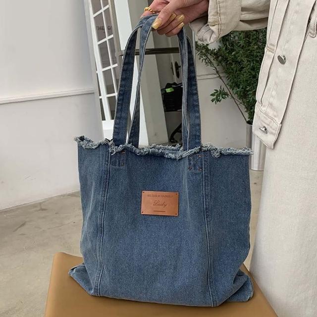 LEESA牛仔托特包\帆布包\托特包\肩背包\手提包\女生包包\韓國包包\休閒包包\牛仔包\大容量托特包\禮物