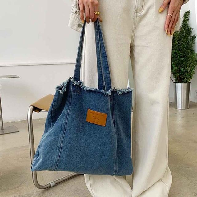 LEESA牛仔托特包\帆布包\托特包\肩背包\手提包\女生包包\韓國包包\休閒包包\牛仔包\大容量托特包\禮物