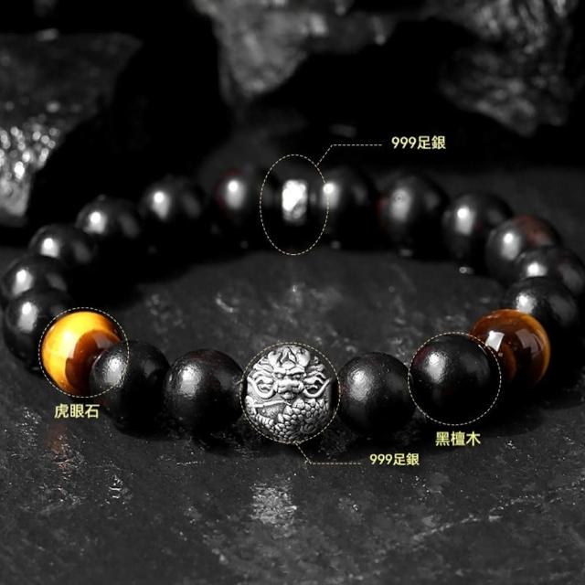 LEESA黑檀木手串\手工串珠\手鍊\純銀手鍊\足銀手鍊\純銀龍珠\手環\送禮\手串\本命龍年\高級感\避邪手鍊