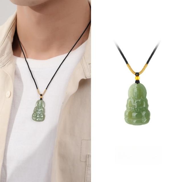 LEESA玉觀音項鍊\和田玉項鍊\編織繩項鍊\觀音吊墜\ 項鍊\保平安\避邪項鍊\送禮\項鍊\氣質項鍊