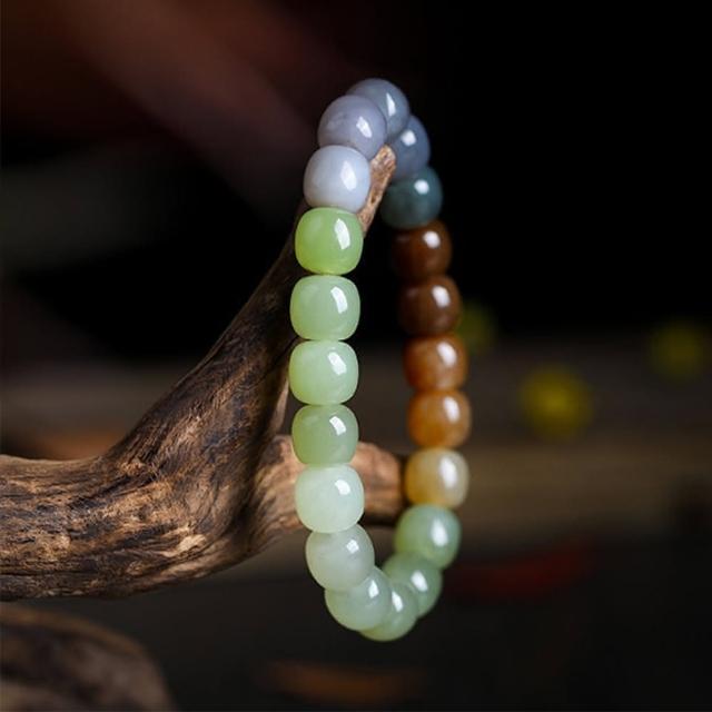 LEESA和田玉多寶手串\烟紫和田玉\新疆老料\佛珠\糖三彩手串\老型桶珠手串\和田糖玉\漸變手鍊\百搭飾品