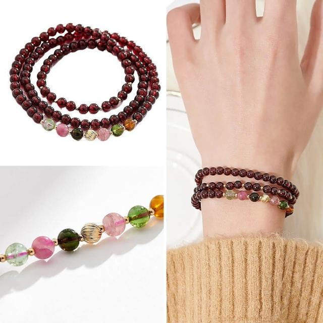 LEESA碧璽手串\石榴石手串\招財手鍊\能量手環\串珠水晶\禮物\多圈手串\手串\水晶手鍊\超七水晶