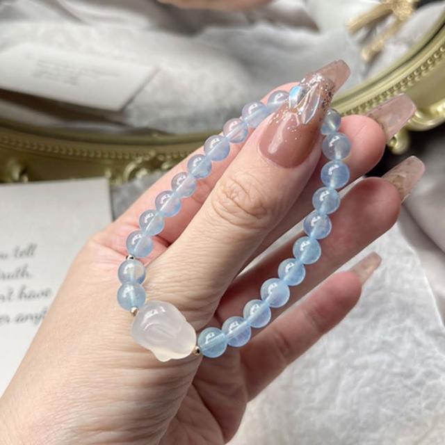 LEESA手鍊\海藍寶手串\圓珠手環\手珠\水晶手鍊\玉髓兔\水晶手串\超七手鍊\五行水晶\ 手鍊