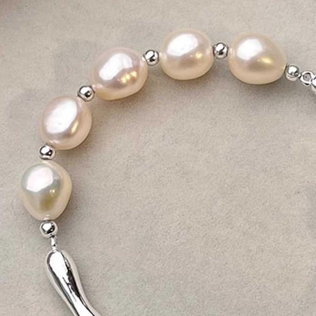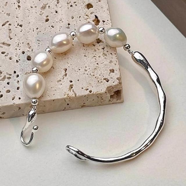 LEESA半鐲珍珠手環\純銀手鍊\珍珠手環\銀手鐲\手環\百搭飾品\純銀手環\半鐲\小眾設計\不規則手環