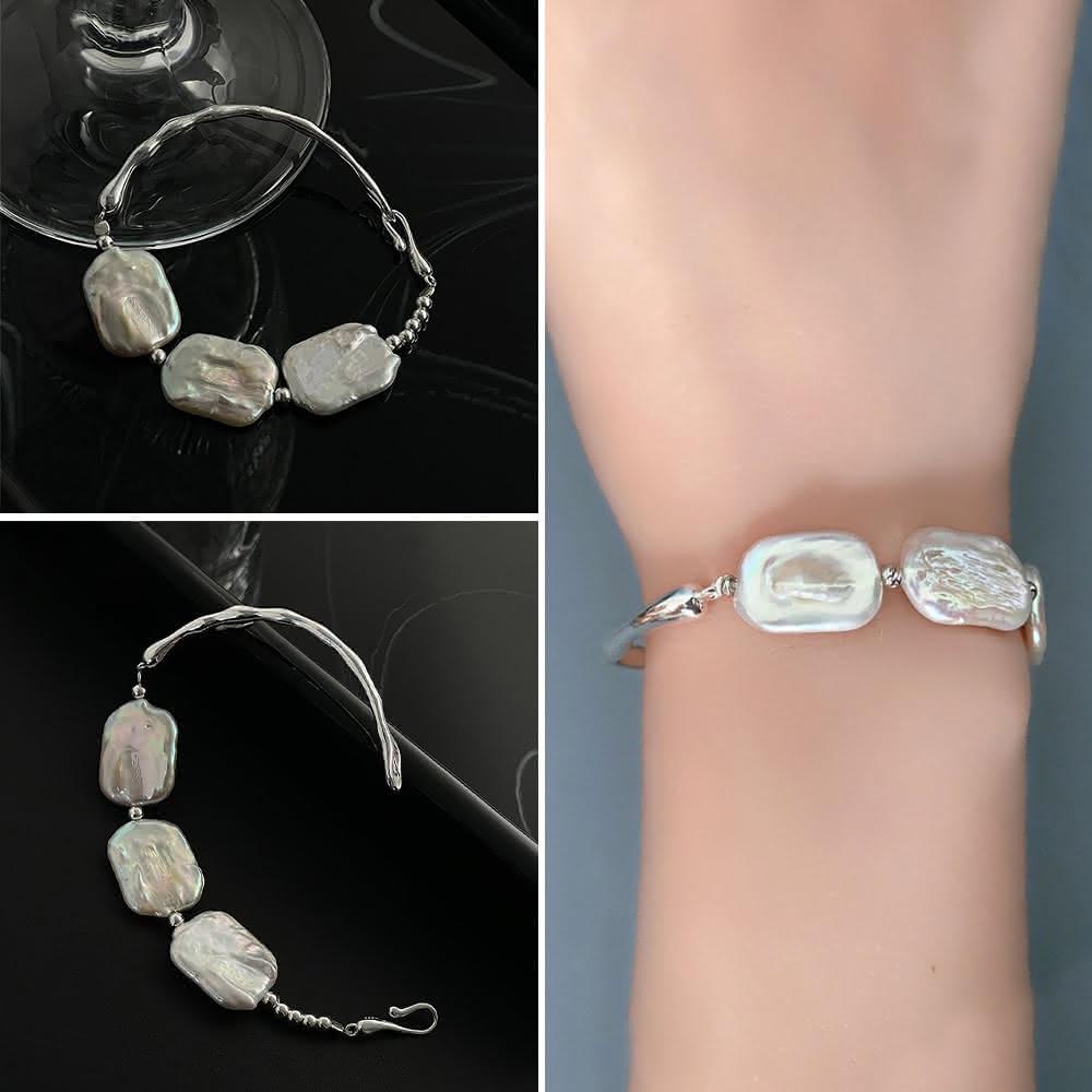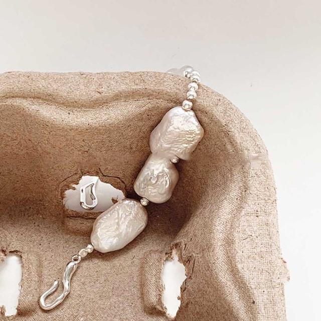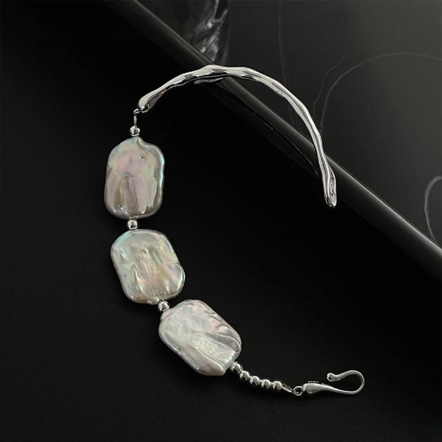 LEESA扁珍珠手環\法式手環\純銀手環\半鐲\手鐲\手環\珍珠手環\銀手環\不規則手環\百搭飾品\婚宴飾品