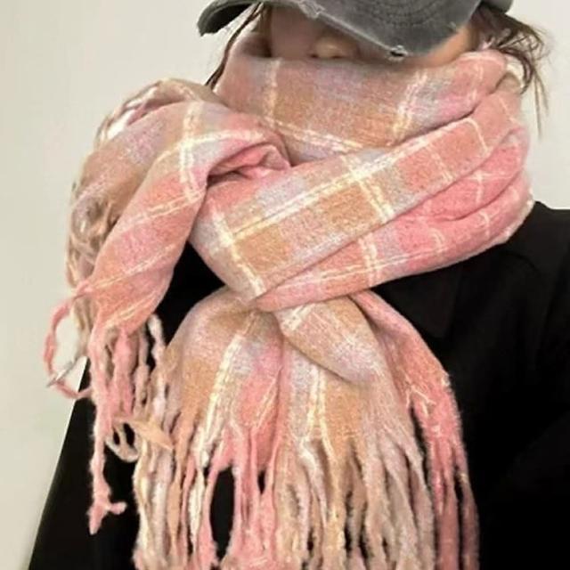 LEESA圍巾\圍脖\小臉神器\加厚圍巾\粉色圍巾\保暖披肩\生日禮物\女生實用\保暖圍巾\格子圍巾\仿羊絨圍巾\顯白顯氣色