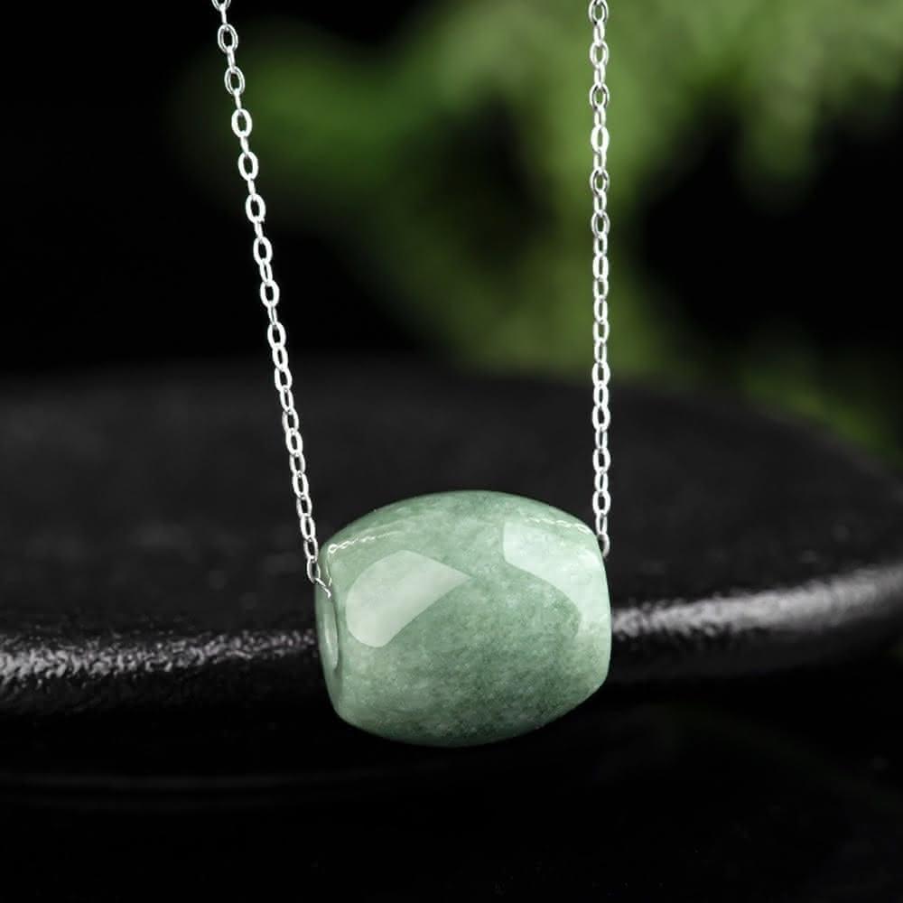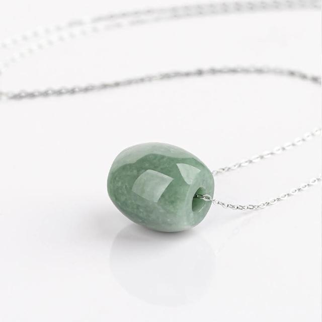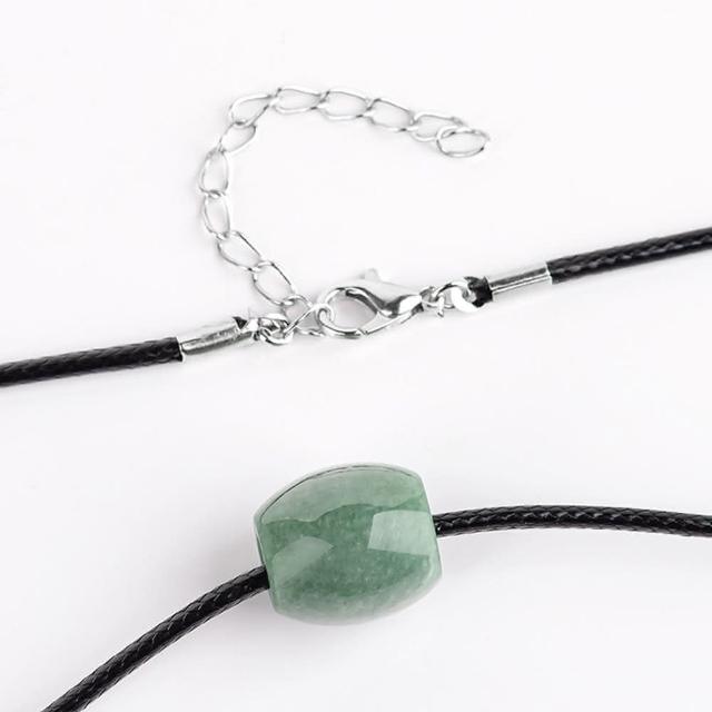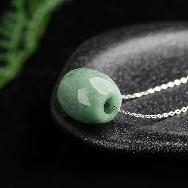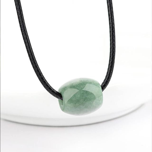 LEESA桶珠項鍊\翡翠吊墜\玉石項鍊\純銀項鍊\招財納福\皮繩項鍊\保平安\禮物\冰種玉\玉墜\百搭飾品
