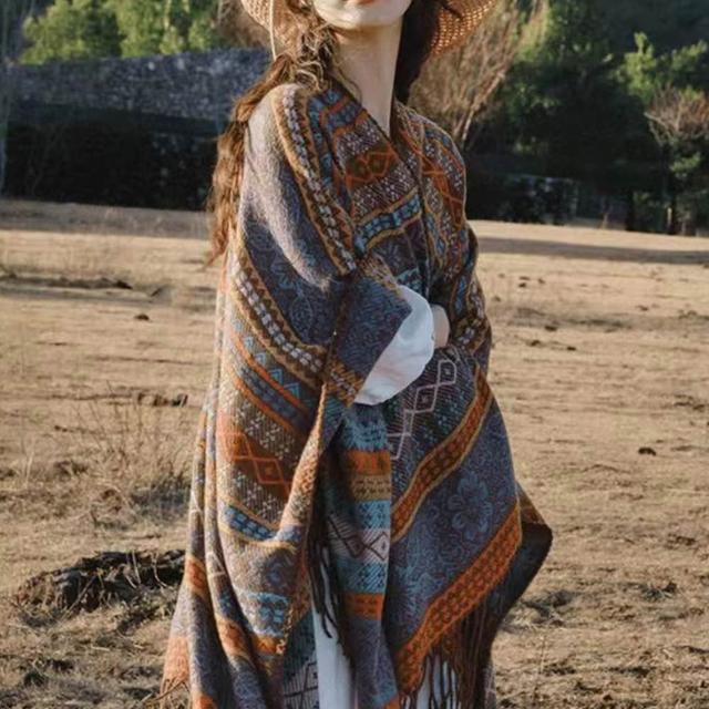 LEESA波希米亞\民族風\披肩外套\寬圍巾\披肩斗篷\保暖披肩\披肩\斗篷\圍巾\外搭斗篷\披肩毯\流蘇披肩\披風\禮物\