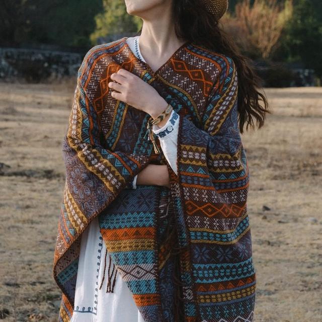 LEESA波希米亞\民族風\披肩外套\寬圍巾\披肩斗篷\保暖披肩\披肩\斗篷\圍巾\外搭斗篷\披肩毯\流蘇披肩\披風\禮物\