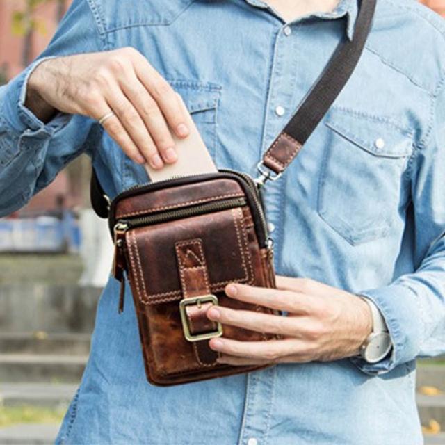 LEESA真皮腰包\牛皮腰包\多功能包\包包\斜背包\腰包\掛包\男款小包\手機包\真皮斜背包\牛皮斜背包\穿皮帶\禮物