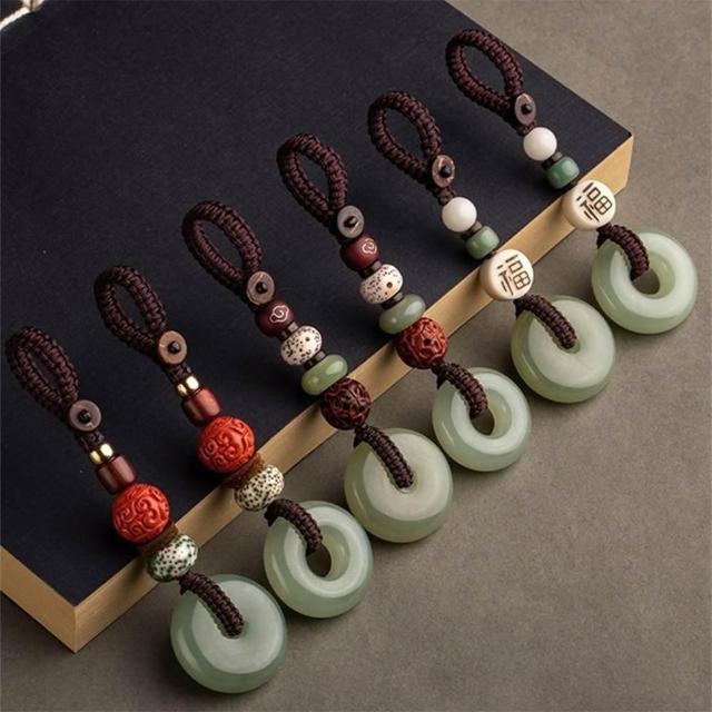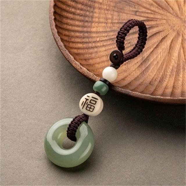 LEESA平安扣吊飾\和田玉掛件\汽車鑰匙圈\鑰匙扣環\吊墜\掛飾\鑰匙圈\編織繩\男女通用\包包吊飾\包包掛件