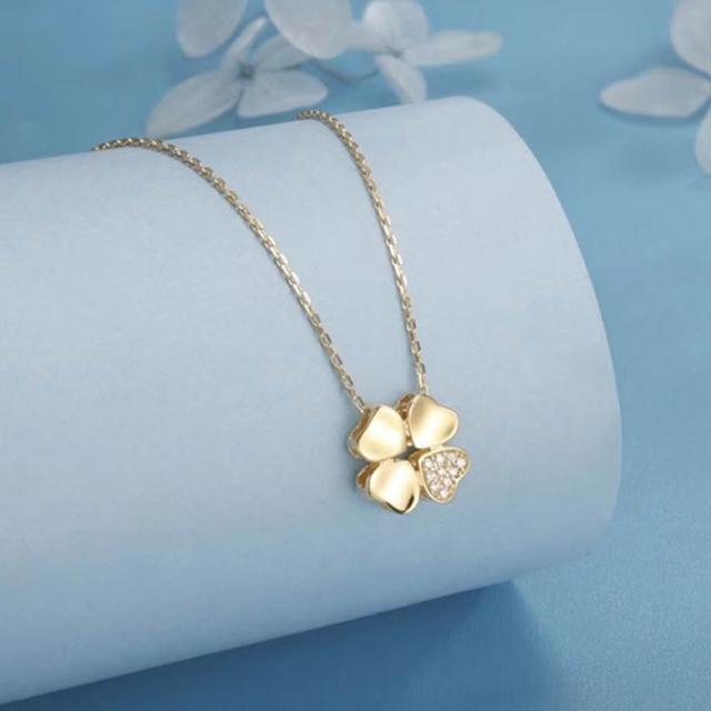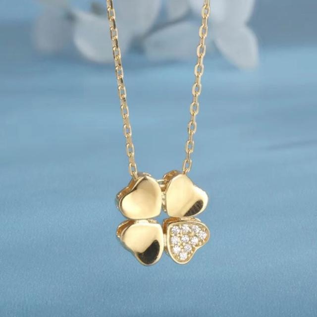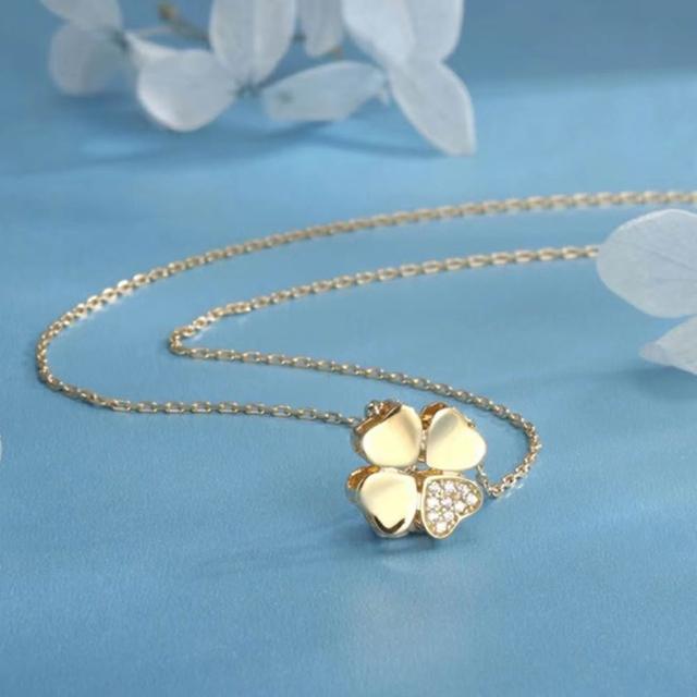 LEESA925銀\純銀項鍊\幸運草\四葉草項鍊\百搭\鋯石\鋯石項鍊\抗過敏項鍊\鎖骨鍊\飾品\項鍊\女生項鍊\生日禮物