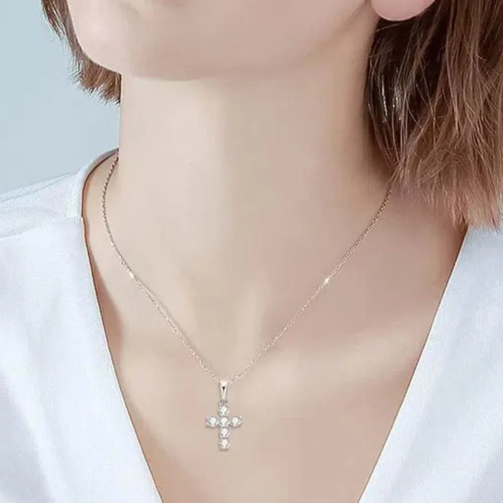 LEESA925純銀\十字架\純銀項鍊\鎖骨鍊\鋯石項鍊\十字架項鍊\銀飾\飾品\項鍊\項鍊女\莫桑石\吊墜\生日禮物