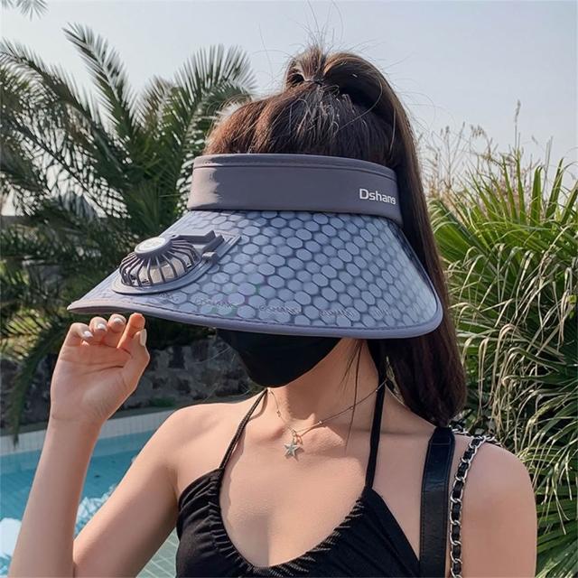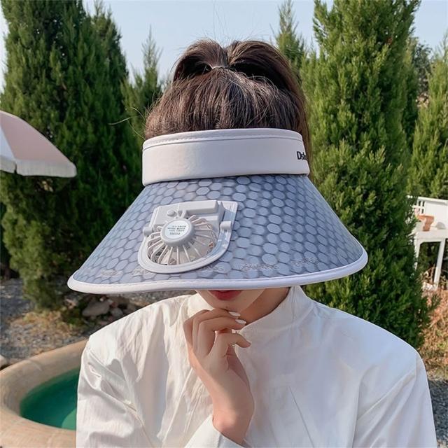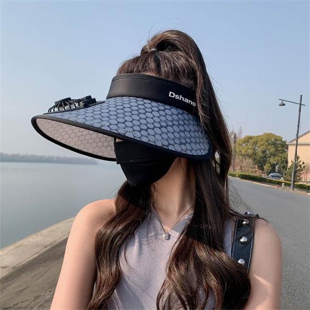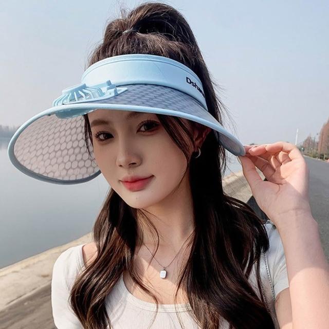 LEESA防曬帽\風扇\太陽帽\大帽檐\空頂帽\戶外帽\防紫外線\戶外遮陽\度假風\帽子\女帽\女生帽子\遮陽帽\風扇帽