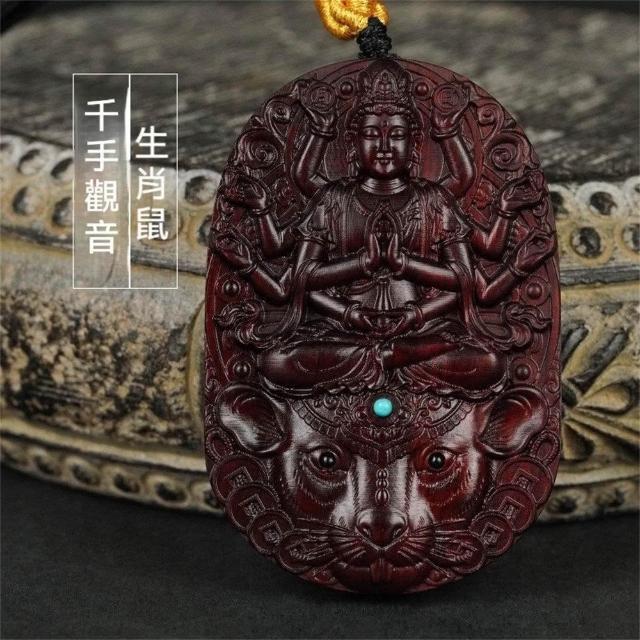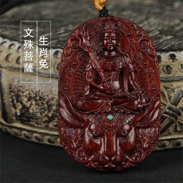 LEESA十二生肖\吊墜\本命年\天然紫檀\掛墜\保平安\招財納福\木雕\不動明王\飾品\佛牌項鍊\項鍊\紫檀木\文殊菩薩
