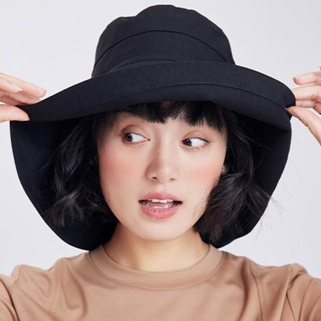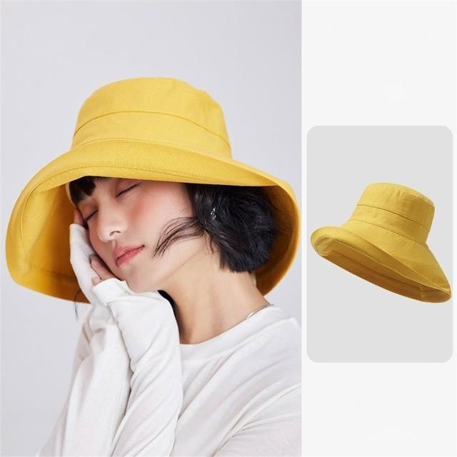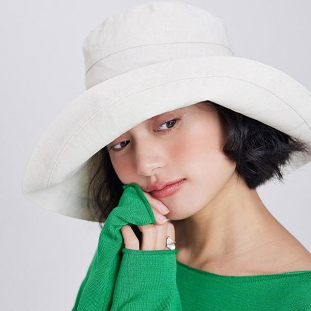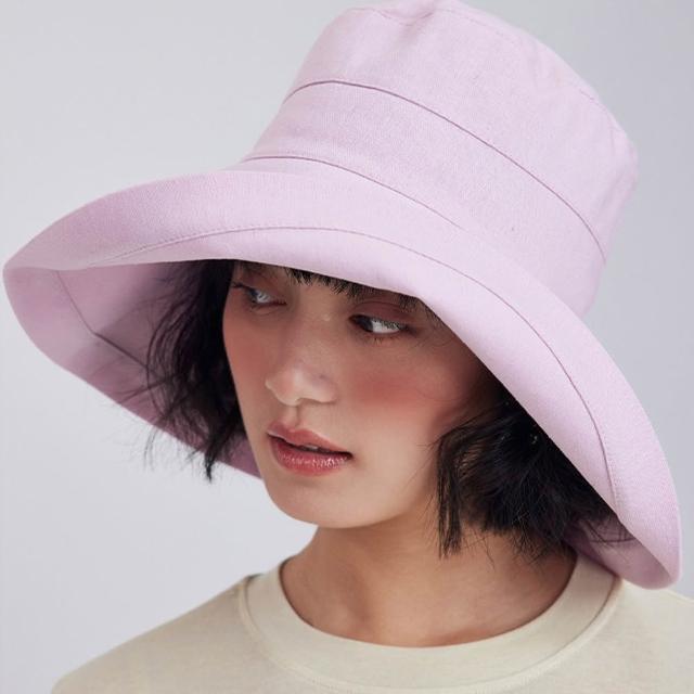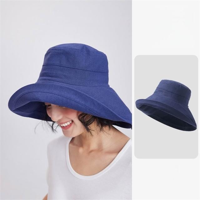 LEESA棉麻帽\日系風\可折疊\防曬帽\遮陽帽\女生漁夫帽\圓帽\純色\大頭圍\穿搭\外出\漁夫帽\大帽簷\帽子女\旅遊