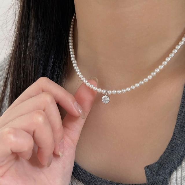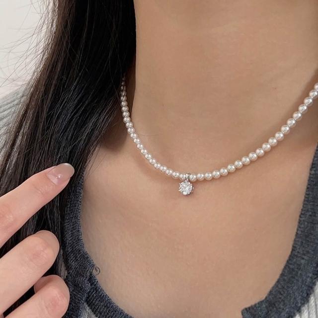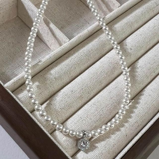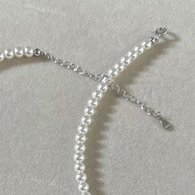 LEESAs925純銀\項鍊女\飾品\高級感\珍珠項鍊\鎖骨鏈\女生項鍊