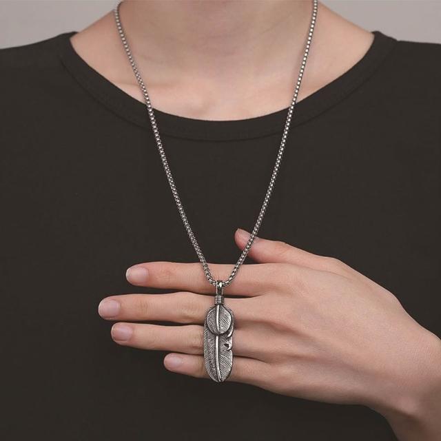LEESA復古項鍊\羽毛項鍊\鈦綱項鍊\毛衣鍊\嘻哈風\街頭感\項鍊\百搭飾品