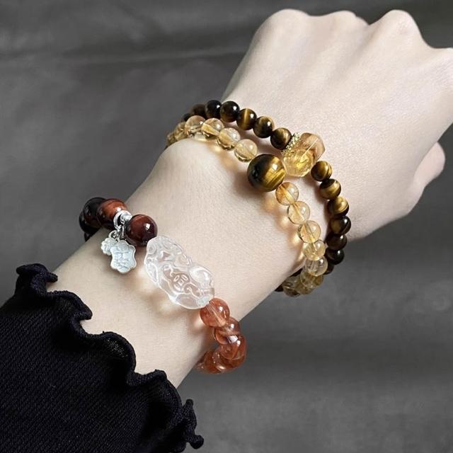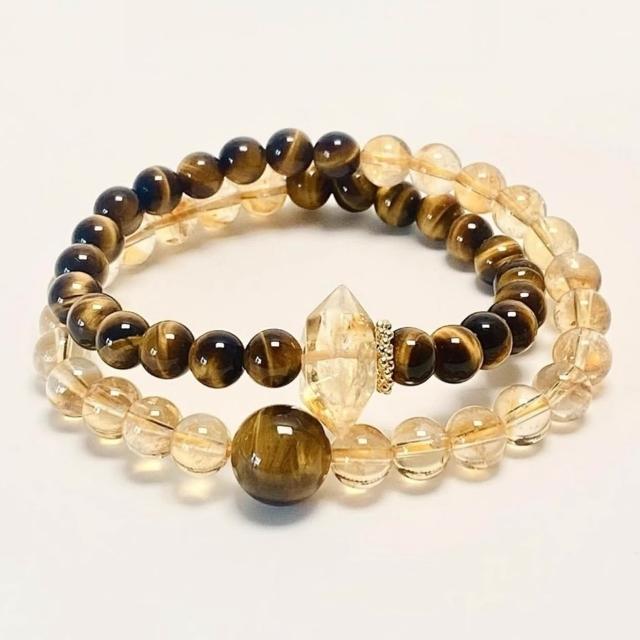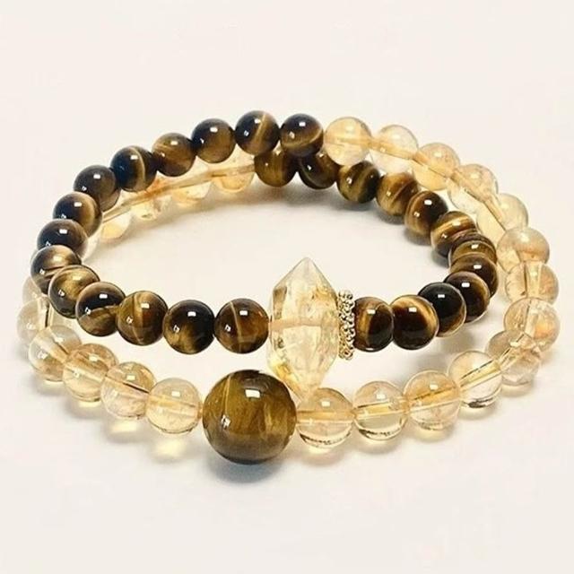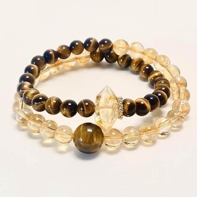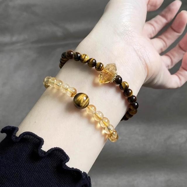 LEESA黃水晶\串珠\圓珠\手鍊女\飾品\高級感\雙圈手鍊\虎眼石
