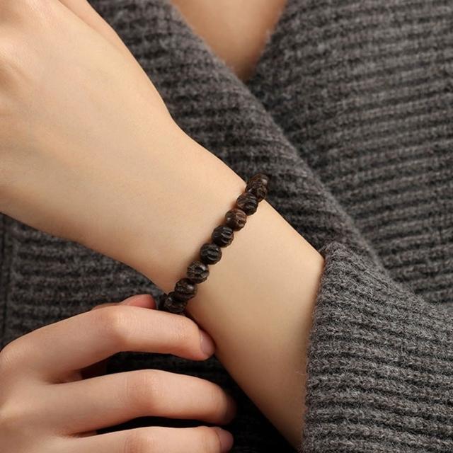 LEESA單圈佛珠手串\8mm沉香串珠飾品\沉香手飾\綠奇楠沉香手鍊\復古文玩