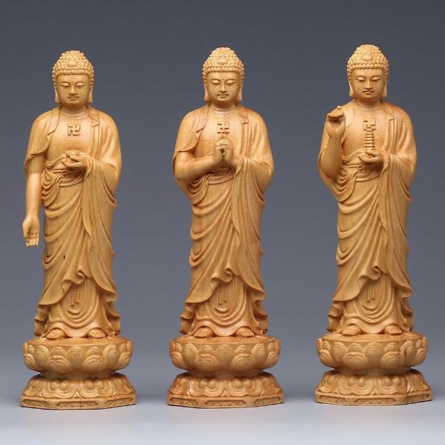 LEESA阿彌陀佛像\木雕藝術\禮佛供奉\西方三聖像\供奉擺設\佛堂靜修\崖柏雕刻佛像\佛堂裝飾用品