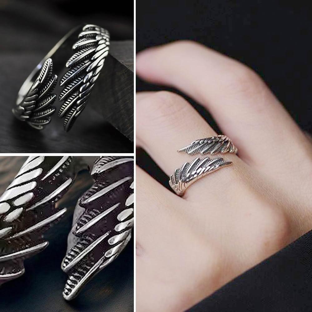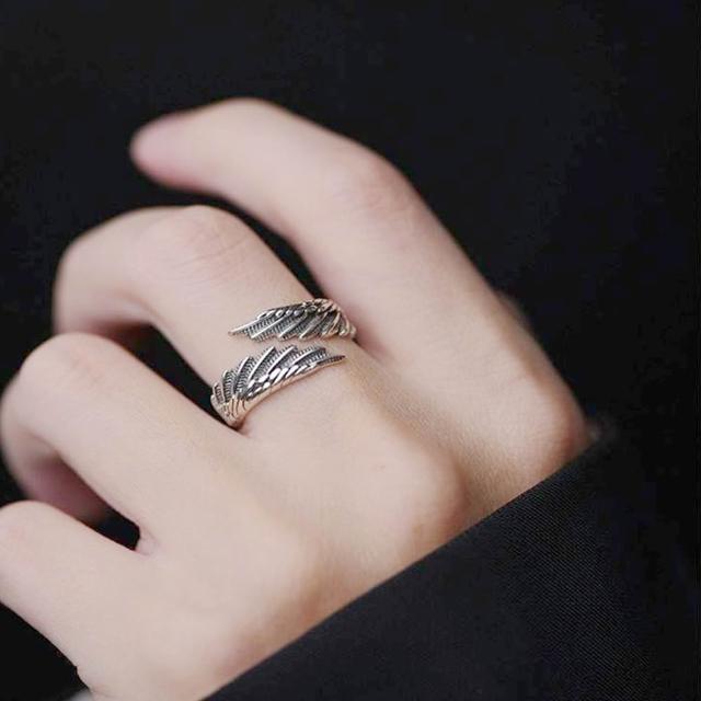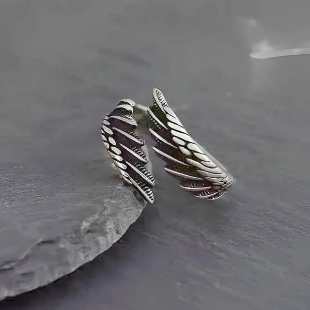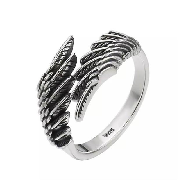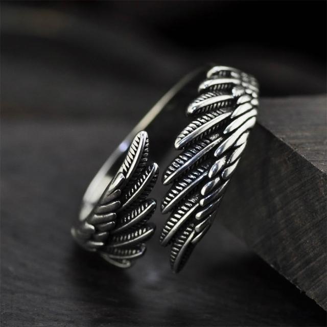 LEESA潮流戒指\男士戒指\做舊復古\街頭潮流\抗敏材質\開口設計\翅膀造型\嘻哈風格\立體雕刻\ S925銀