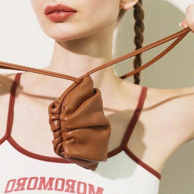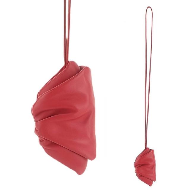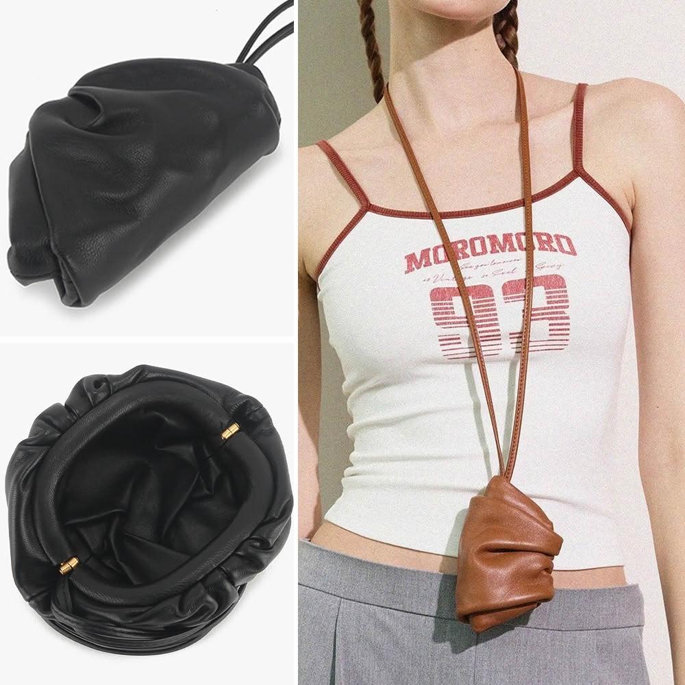 LEESA皺褶包\女生包包\零錢包\包包\迷你包\小皮件\掛脖小包\羊皮包包\真皮掛包\雲朵包\耳機包\