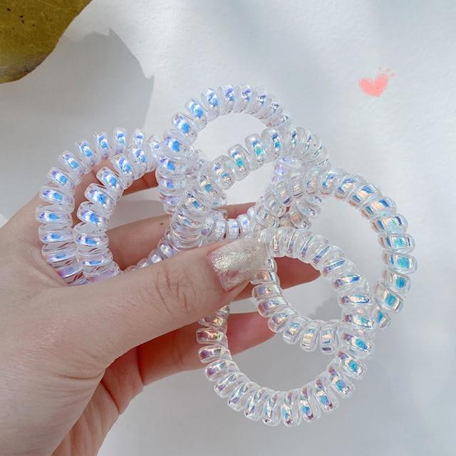 COLOR ME人魚姬珠光電話線髮圈 5條一組髮圈 電話線髮圈 髮束 髮飾 彈性髮圈 高彈力 韓版 髮繩 橡皮筋 -