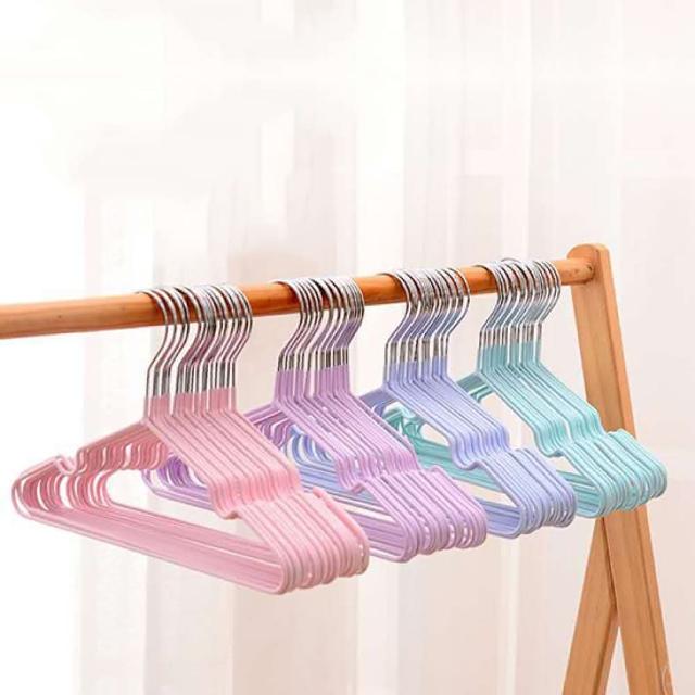 COLOR ME防滑浸塑衣架 100支一組/兒童款衣架 褲架 掛勾衣架 防滑衣架 魔術衣架 彩色 不鏽鋼 不銹鋼 防滑槽 無痕衣架 -