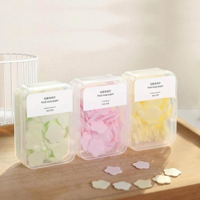 - 花瓣造型皂紙,盒裝便於攜帶