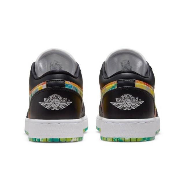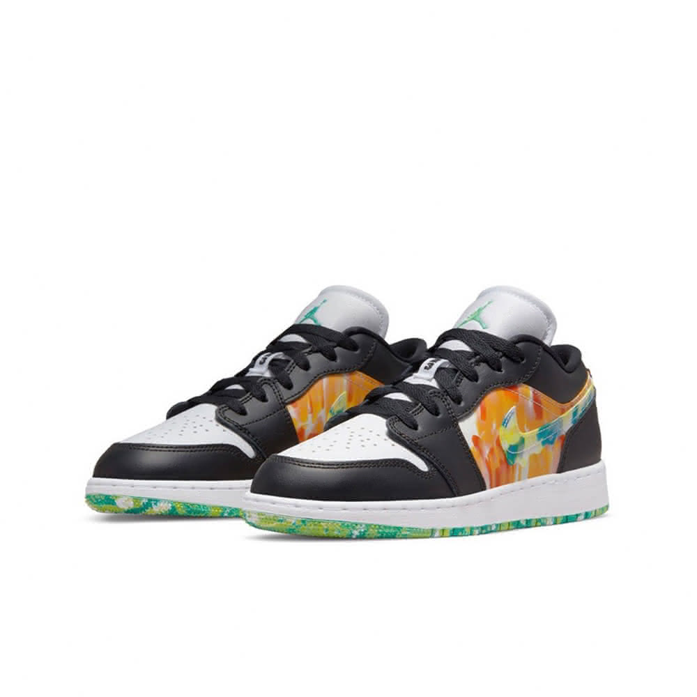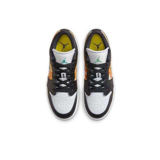 NIKE 耐吉籃球鞋 Air Jordan 1 Low SE GS Drip 水彩 渲染 黑綠橙 大童 女鞋 DJ6252-038交換禮物