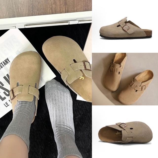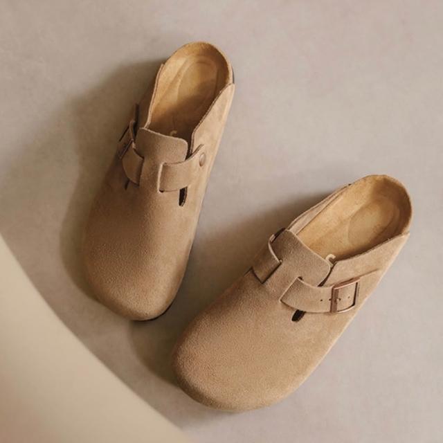 - 麂皮軟木底拖鞋