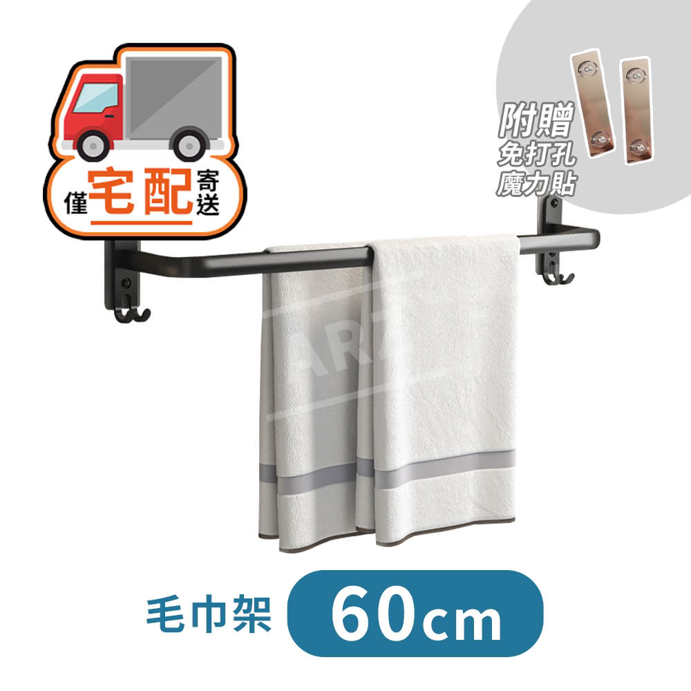 太空鋁 浴室毛巾架 單層 50/60cm 無痕螺絲貼 浴巾架 毛巾架 浴室置物架 壁掛桿 浴室收納架 毛巾桿【E106】