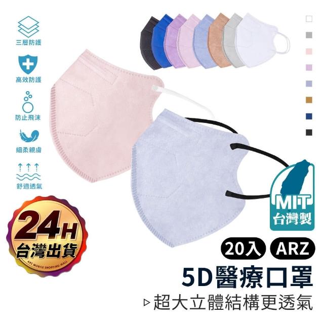 大成 醫療級 5D口罩 台灣製 20入 蝶型口罩 醫用口罩 立體口罩 韓版口罩 無痛口罩 特殊色口罩【D146】