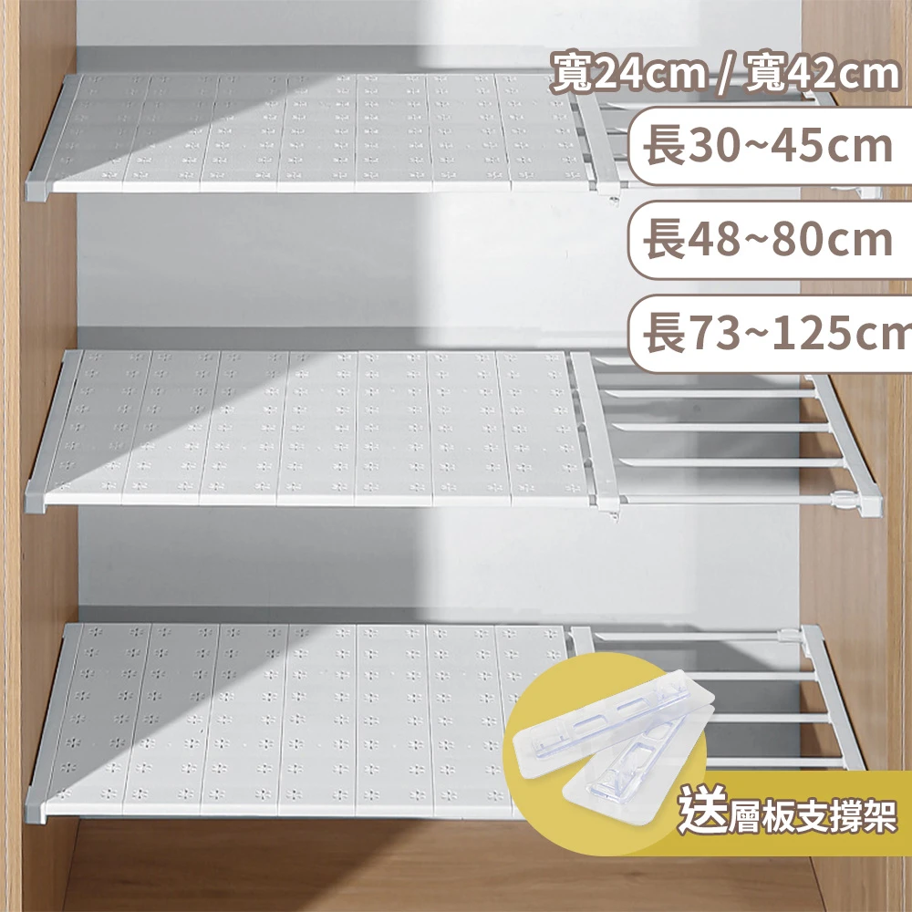 免打孔 伸縮隔板 寬24cm/長73~125cm(分層架 衣櫃隔板 伸縮置物架 層板架 伸縮層架 置物架 伸縮架 收納架 廚下收納)