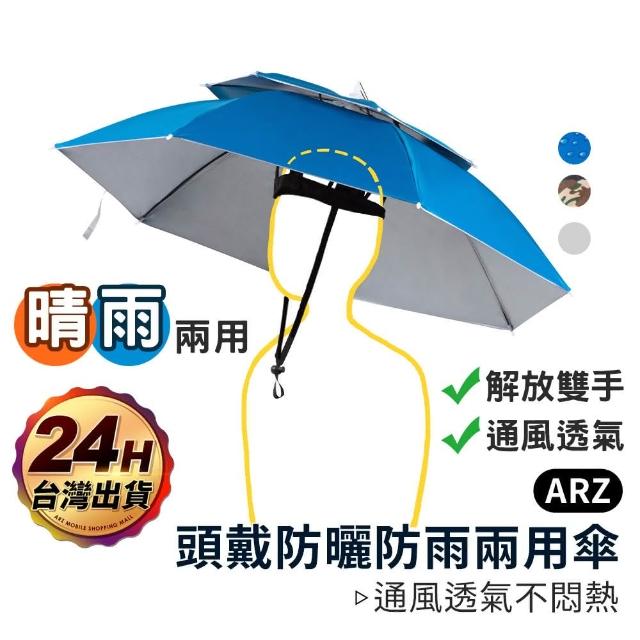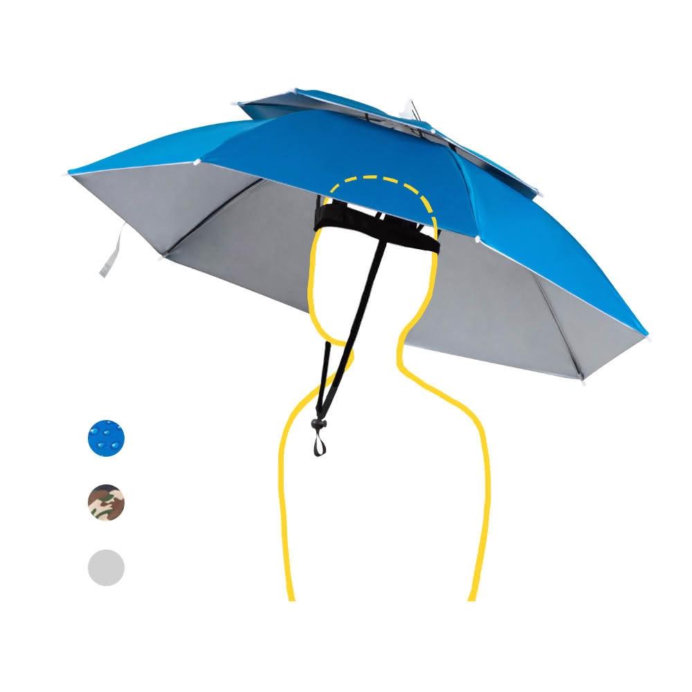 頭戴防曬遮陽傘 雙層透氣傘 戶外工作/釣魚/務農/攝影 防曬 頭戴傘 傘帽 帽子傘 雨傘帽 摺疊傘【B218】