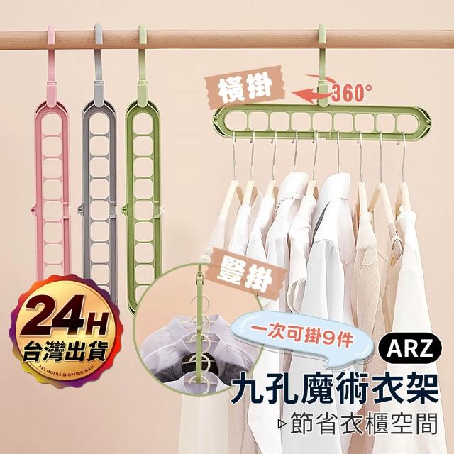 多功能收納衣架 九孔衣架(省空間衣架 旋轉衣架 晾衣架 伸縮衣架 魔術衣架 衣物 衣服收納 曬衣神器)
