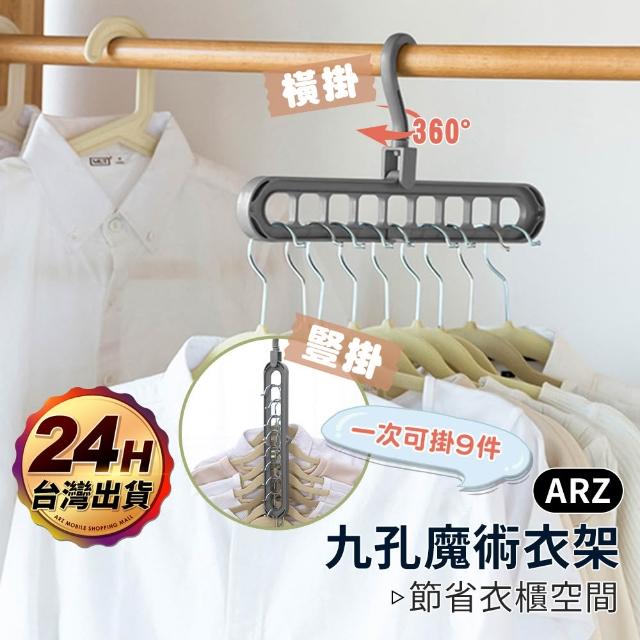 多功能收納衣架 九孔衣架 省空間衣架 旋轉衣架 晾衣架 伸縮衣架 魔術衣架 衣物 衣服收納 曬衣神器【D275】