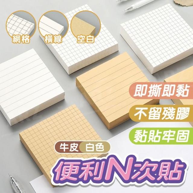 牛皮紙 便利貼 空白/橫線/網格(便條紙 方形便利貼 便簽紙 N次貼 留言貼 黏貼紙 memo備忘錄)