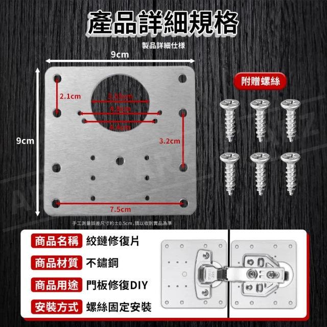 不鏽鋼鉸鍊修復固定片 合頁固定板 鉸鏈安裝板 櫃子 門 合頁板 修補片 鉸鏈修復板 絞鏈 墊片 五金