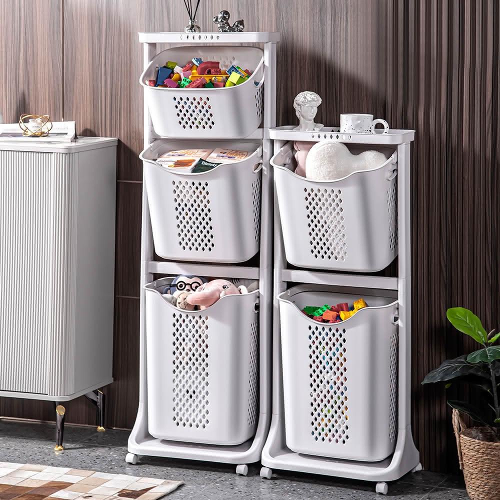 Mr.Box升級加大款-無印風雙向三層髒衣分類收納籃-附輪