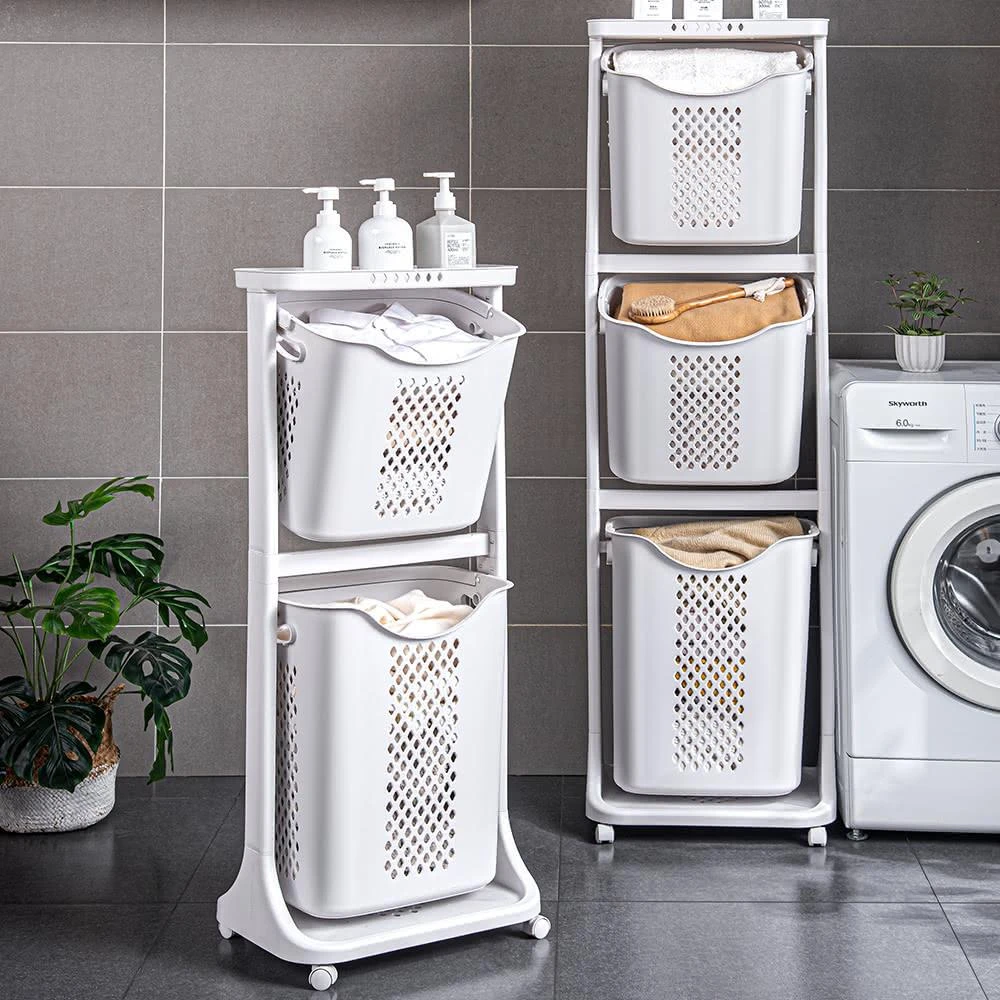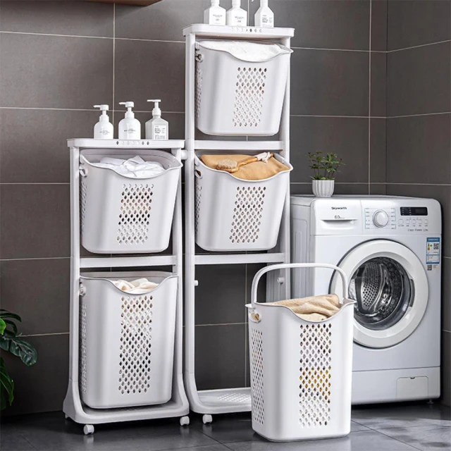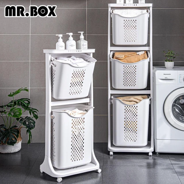 Mr.Box升級加大款-無印風雙向三層髒衣分類收納籃-附輪(特大籃+大籃+大籃)