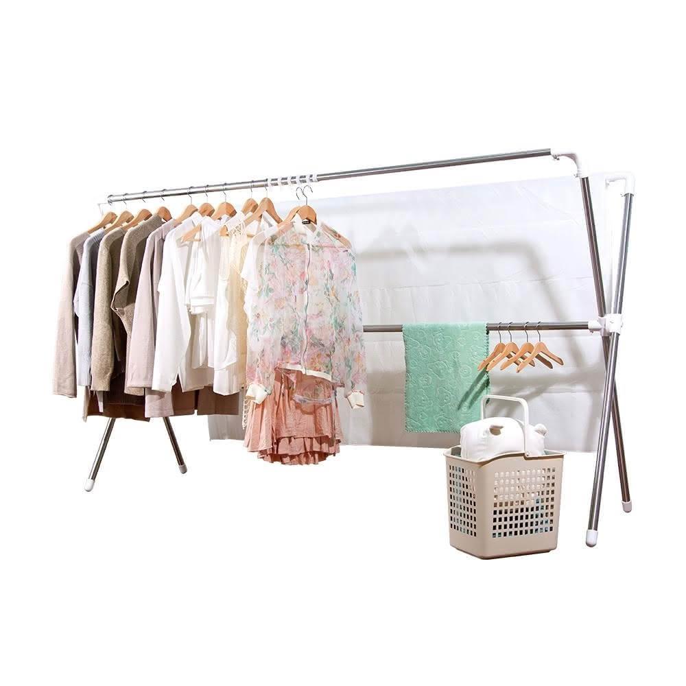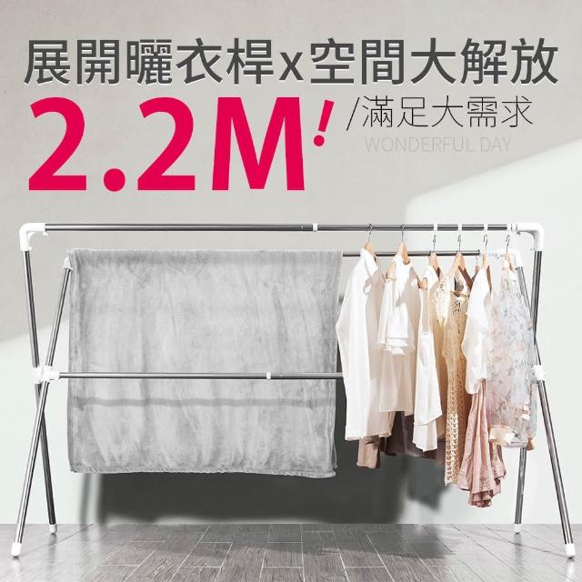 晴天媽咪不鏽鋼X型伸縮曬衣架-加長2.2M(贈10個防風掛勾)