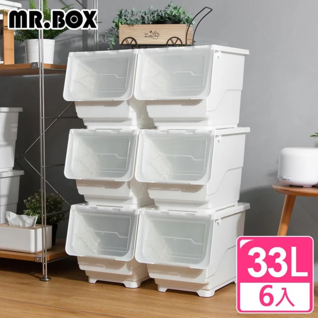 Mr.Box6入組-29大面寬典雅斜口上掀式可堆疊附輪加厚收納箱(33公升-兩色可選)