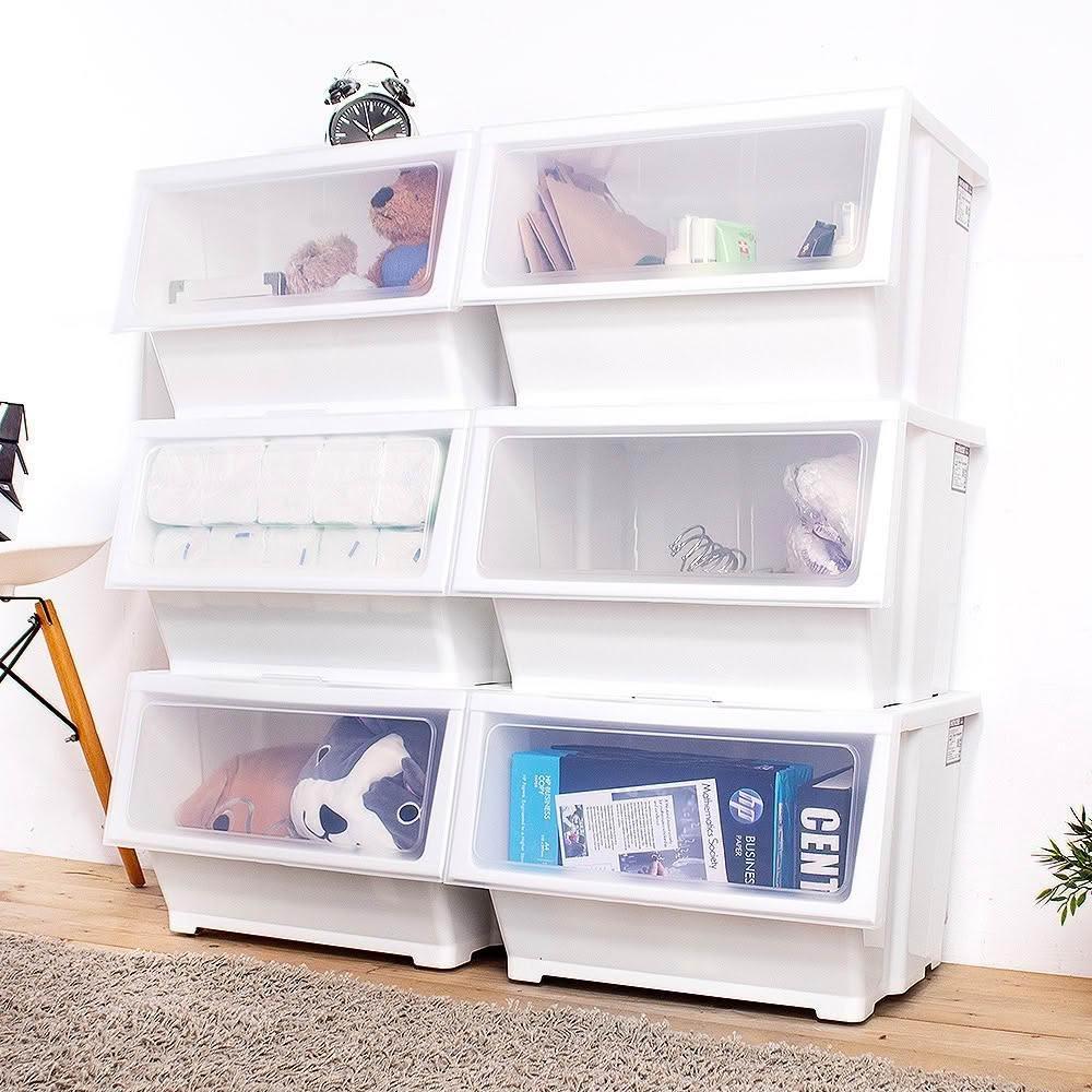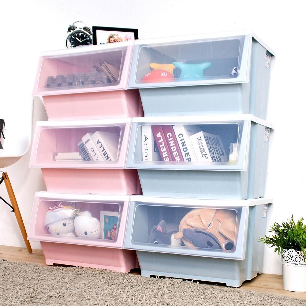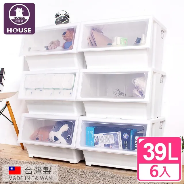 Mr.Box46面寬艾夏掀蓋式可堆疊玩具衣物收納箱39L-6入