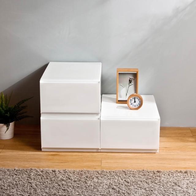 Mr.Box純白無印風一層抽屜式收納箱-2入2號-台灣製造